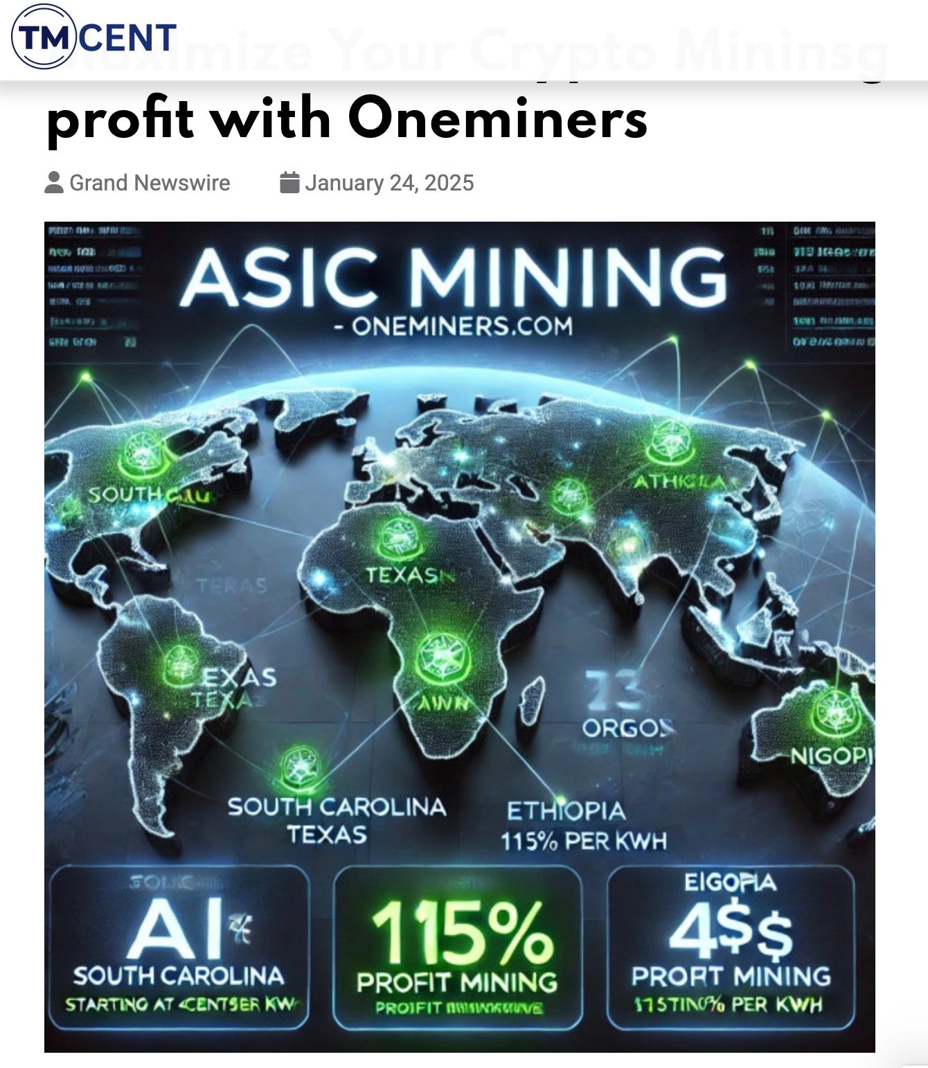 BigNewsNetwork mention Oneminers new Data center